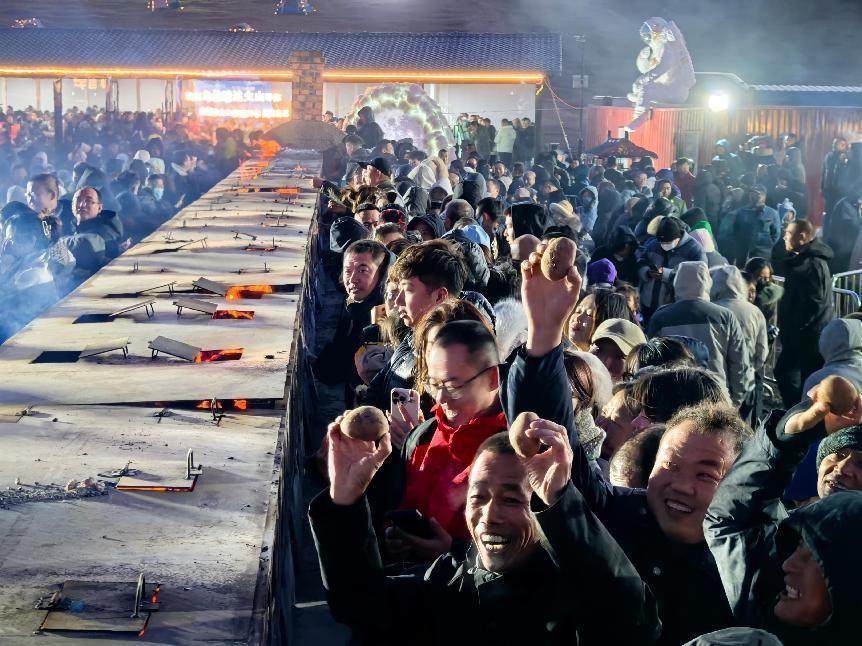 乌兰哈达火山脚下“千人烤土豆”。人民网记者 苗阳摄